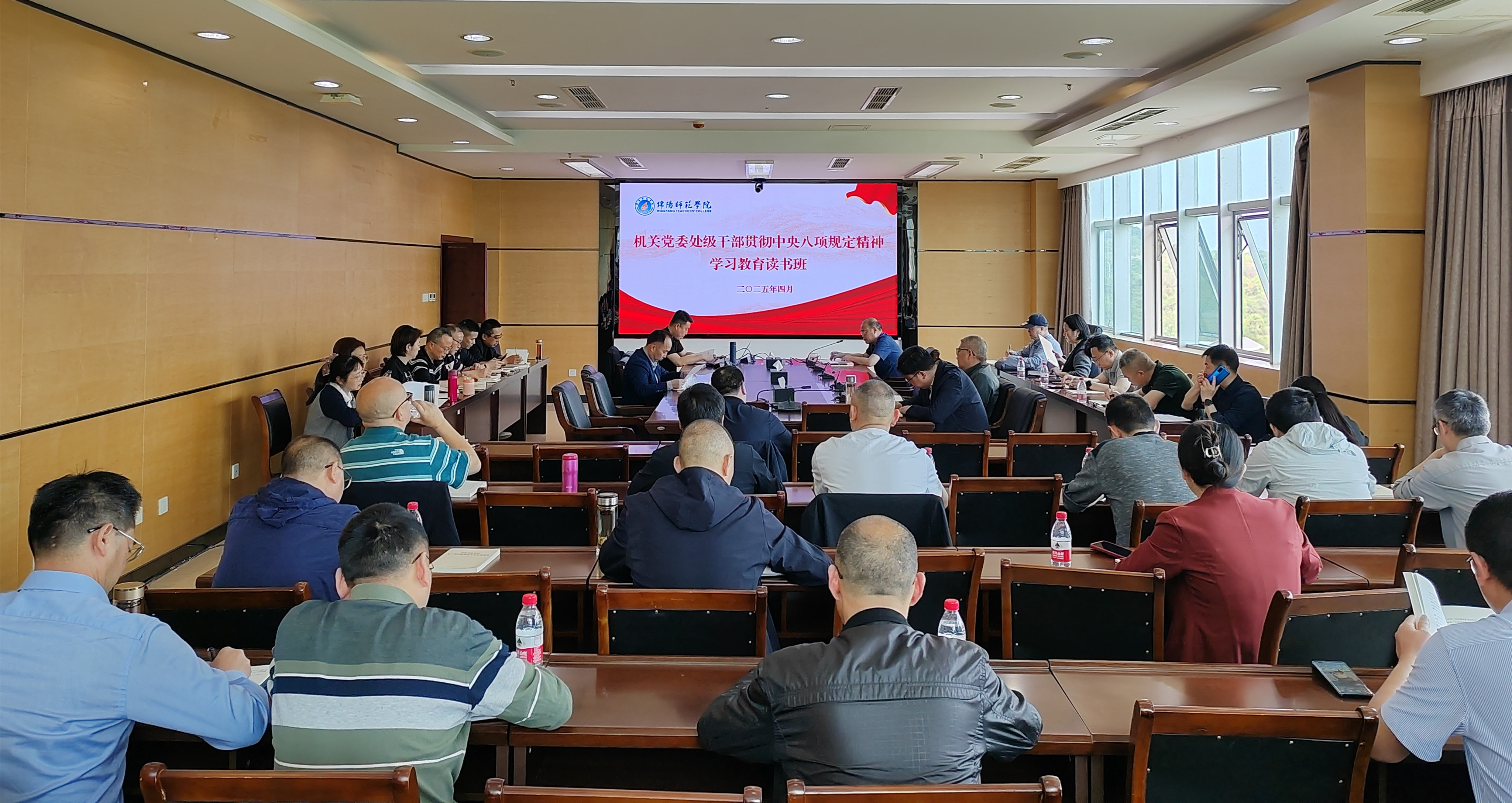 为深入贯彻习近平总书记关于加强党的作风建设的重要论述和中央八项规定精神,根据学校党委工作部署要求,4月14日下午,机关党委在知行楼612室举办处级干部贯彻中央八项规定精神学习教育读书班。机关全体处级干部参加学习。