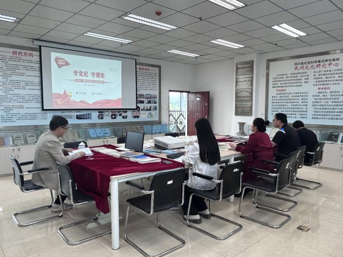 为深入学习贯彻新修订的《中国共产党纪律处分条例》(以下简称《条例》),进一步增强支部党员的纪律意识和规矩意识,5月9日下午,四川民间文化研究中心、四川基础教育研究院联合党支部在知行楼202会议室召开党员大会,支部书记陈桂权为全体党员讲党纪学习教育专题党课。